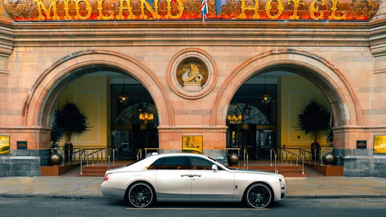 ROLLS-ROYCE Rolls-Royce Manchester Ghost ロールス・ロイス マンチェスター・ゴーストは、マンチェスターとロールス・ロイスの歴史的なつながりを記念して、マンチェスターのためにデザインされたビスポーク・モデルで、2023年4月14日に発表された。ロールス・ロイス誕生のきっかけとなったのは1904年5月4日、創業者のチャールズ・ロールズとヘンリー・ロイスがマンチェスターの中心部にあるミッドランド・ホテルで初めて出会い、「世界一の自動車」を作ることに合意したことであった。 ROLLS-ROYCE