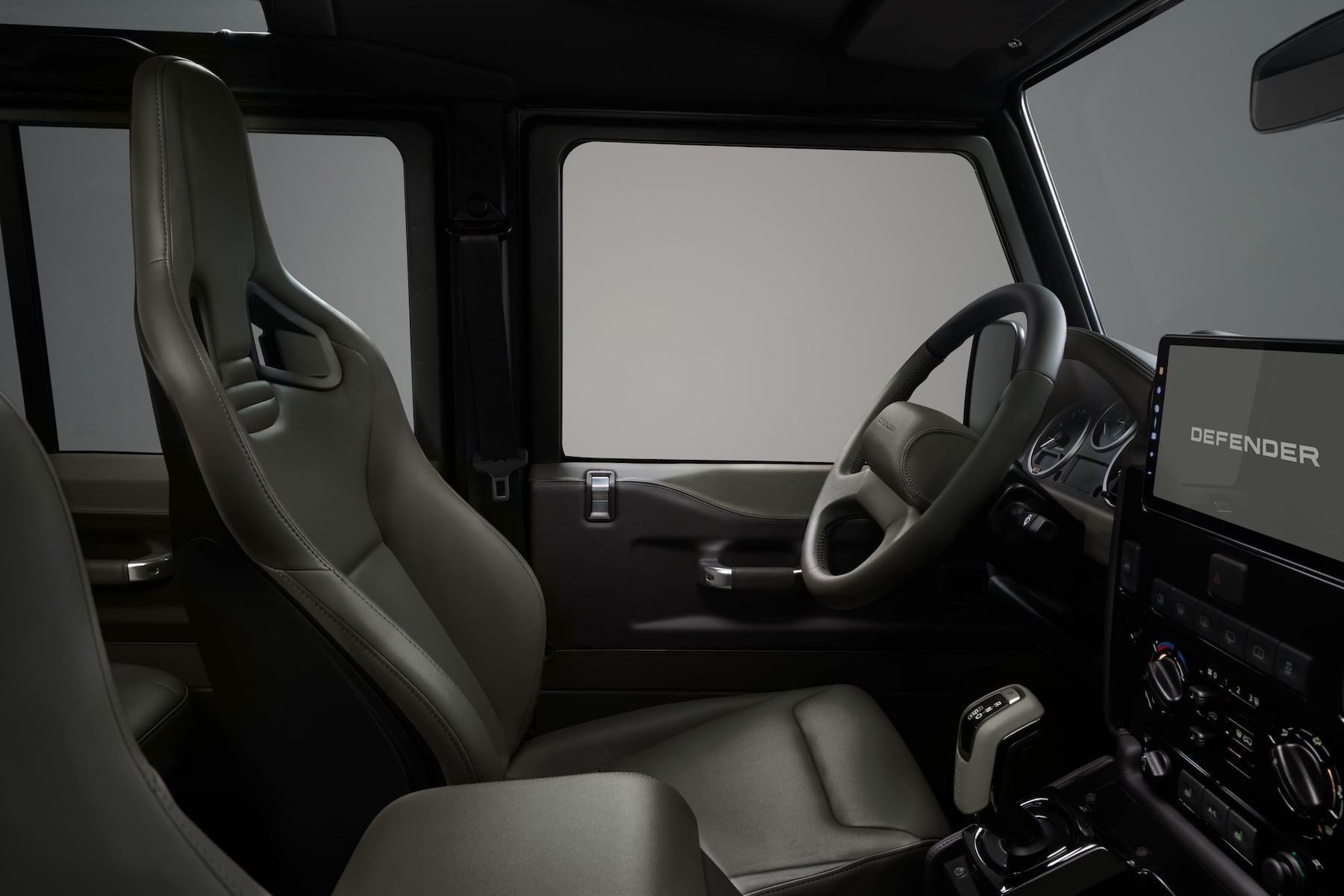インテリアにおいても、ディフェンダー OCTAと連動した新たな選択肢が初めて導入された。軽量なUltrafabrics™ PUはカーキグリーン、ライトクラウド、ルナーの3色を用意し、加えてバーント・シエナのセミアニリンレザー、OCTAブラックに対応するエボニーレザーも設定される。手作業で仕立てられるヒーター付きレカロ製スポーツシートを選択でき、ステアリング、シフトレバー、ダッシュボード、天井、ドアトリムに至るまで、カラー配置の細部をデザインチームと共に作り上げることが可能である。