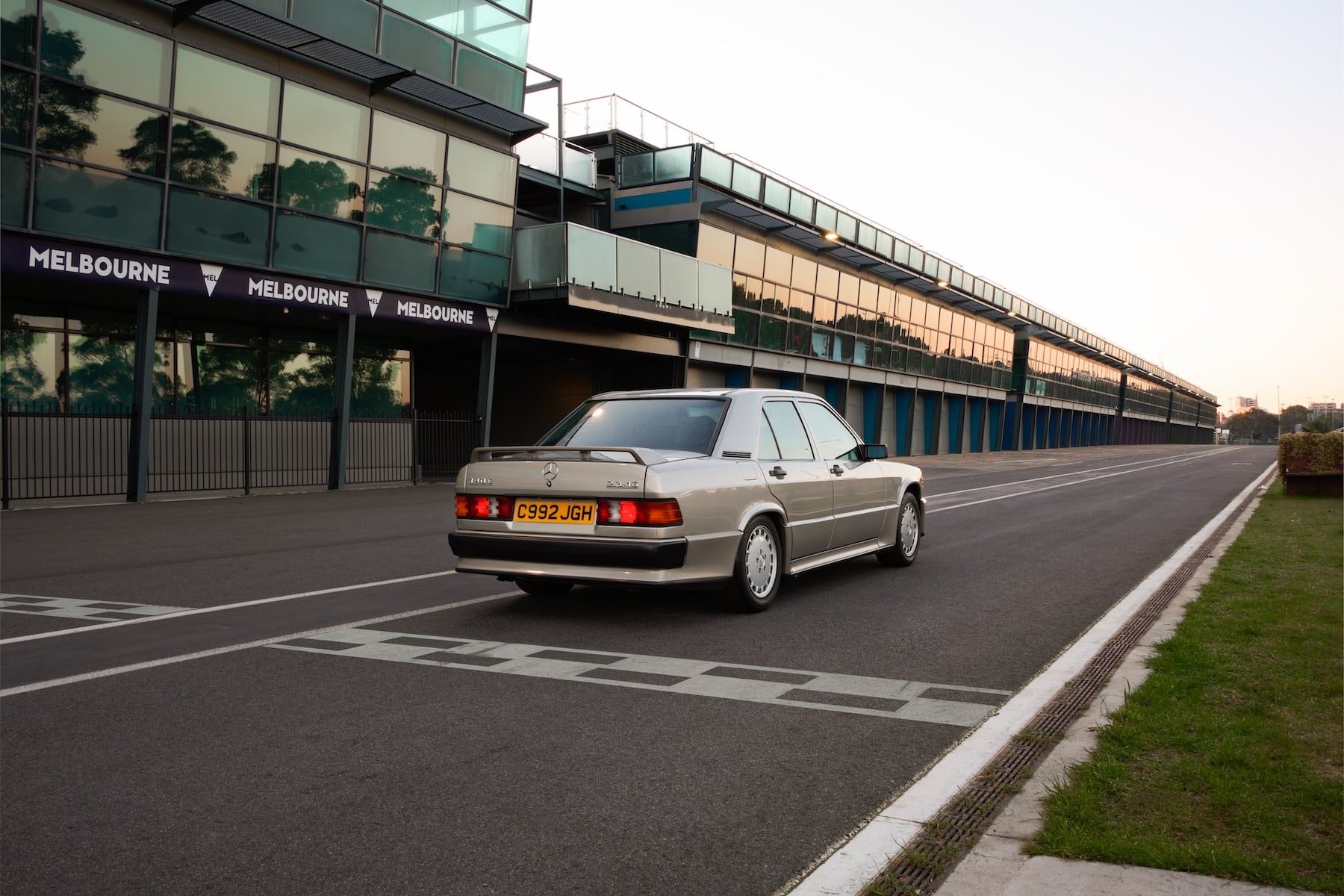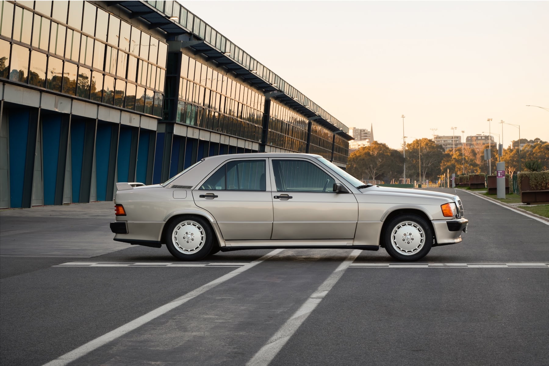 Driving a lightly race-prepared Mercedes-Benz 190 E 2.3-16 finished in Smoke Silver Metallic, Senna stunned the field. He qualified third and went on to claim victory in the rain-soaked 12-lap race—holding off Lauda himself. This triumph ignited Senna’s desire to own the car personally.