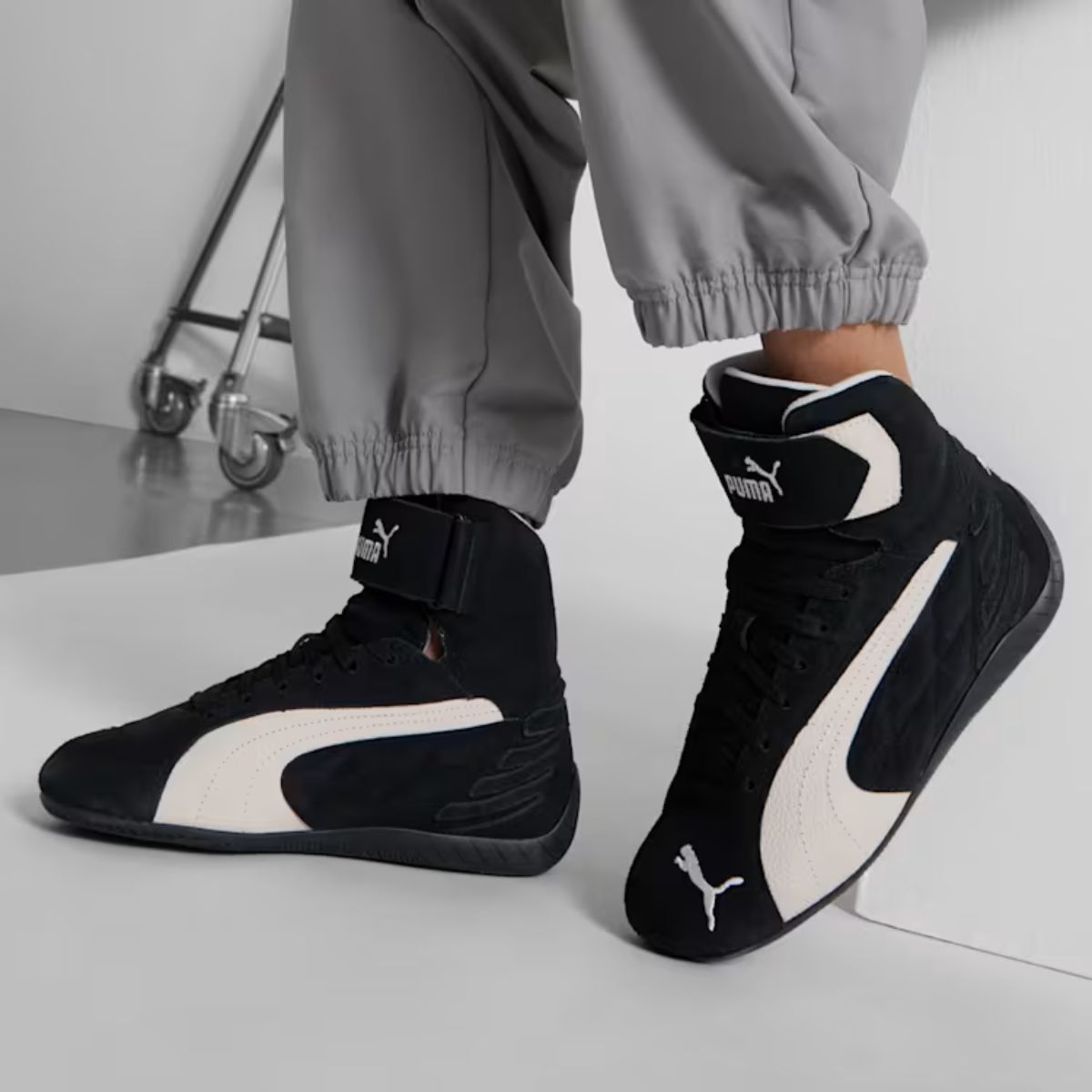 レーストラックのスピードにインスパイアされたPUMAクラシック、スピードキャット ミッド スニーカーが登場。